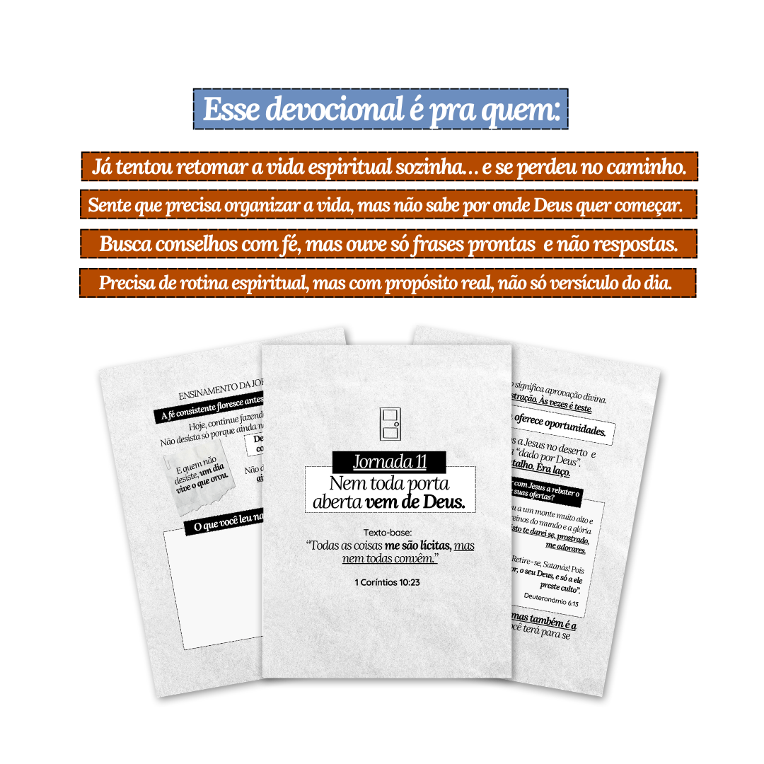 É um devocional de 15 etapas, feito pra te tirar do lugar de dúvida e te colocar no centro da vontade de Deus.